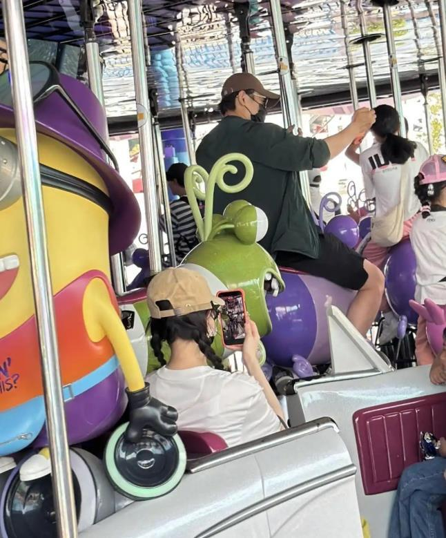 这趟出行显然以孩子为中心,夫妻俩全程陪同。他们特意陪着女儿去坐了旋转木马。坐上木马后,罗晋戴上了口罩和墨镜,想来是希望低调一些,减少打扰。他的女儿就坐在身旁,罗晋拿起手机,专注地为女儿拍照,记录下她的可爱瞬间。