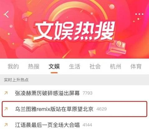 随着节目播出,“乌兰图雅pk范玮琪”;“乌兰图雅remix版站在草原望北京”迅速冲上热搜.
