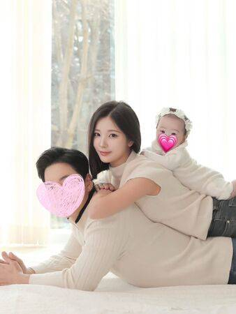 随文字曝光的照片里,金昭喜与丈夫及女儿的日常生活温暖而生动。画面中,丈夫怀抱女儿,温柔地凝视着孩子,满溢父爱;金昭喜则时而俏皮自拍,时而蹲下与孩子趴在地上玩耍,母女间的互动自然又真实。还有一家三口在水族馆中流连、户外散步的画面,以及身着韩服拍摄家庭纪念照的温馨瞬间,每一张都洋溢着幸福气息。特别是一张照片中,丈夫怀抱女儿,画面上用韩文写着?? ??(幸福满满),生动象征着一家三口的甜蜜心情。