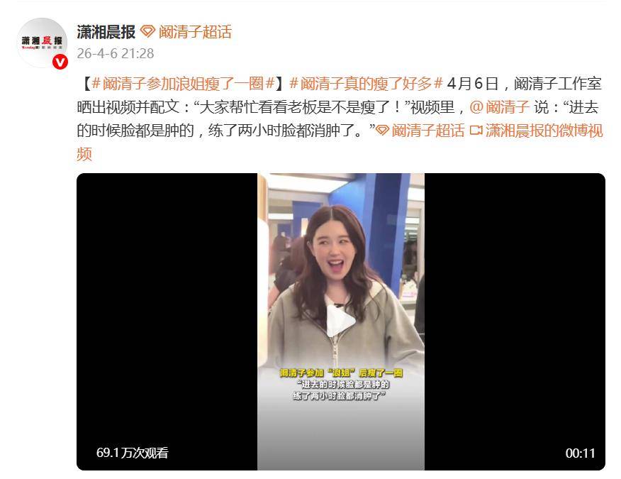 据4月7日报道,一段工作室视频让阚清子又成了话题中心。视频里,她对着镜头直言:“进去的时候脸都是肿的,练了两小时脸都消肿了。”配合工作室那句“大家帮忙看看老板是不是瘦了”,效果直接拉满——这哪是参加女团竞演,分明是进了“身材管理速成班”!
