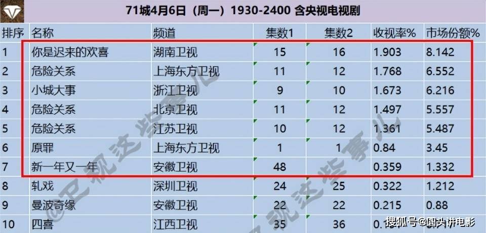 **电视剧吃瓜简评:这五部剧的收视率让人哭笑不得!**,电视剧的收视率又开始热闹起来,五部剧的数据都出来了,果然人间烟火气总是让人忍不住吐槽,来看看这五部剧的收视率和剧情,给大家送个瓜一吃。,**第一名《你是迟来的欢喜》,收视率1.903%。** ,这部剧收视率居然能拿到1.9%,简直是“双全归一”啊!主演魏哲鸣、郑合惠子、李俊贤,三个男的CP感爆棚,简直让人一秒冲上天!剧情虽然是小甜剧,但能补充男主男二喜欢女主的原因,脑洞大开,三观全送,郑合惠子穿着的服装简直让人想给他发工资,镜头语言和细节都很精致,配角们也都有自己的弧线,这部剧看起来还不错,尤其是主角的互动,甜到心坎里。,**第二名《危险关系》,收视率1.768%。** ,这部剧直接从第一名跌到了第二,看来“危险”不仅在剧里,收视率也很危险哦!主演孙俪和吴慷仁,演技在线,孙俪的角色颜聆虽然脆弱,但又坚韧,真有看点,而吴慷仁的演技更是给剧集增色不少,剧情题材新颖,社会意义强,值得一看,虽然收视率不高,但剧质绝对没问题,建议收藏。,**第三名《小城大事》,收视率1.673%。** ,这部剧用细腻的笔触还原了改革开放初期的小城变迁,人物塑造立体,烟火气十足,高雪梅和李秋萍的演技真的让人惊艳,尤其是高雪梅的角色,情绪和层次都演绎得淋漓尽致,谭镇长这个角色虽然严肃,但又带着一点小洁癖,鲜活又立体,很有看点,主线故事有温度有力量,能感受到那个年代的热血与理想,虽然支线稍显拖沓,但整体还是良心剧,值得一看。,**第四名《原罪》,收视率.84%。** ,这部剧的表现真的让我大失所望,虽然“冲着某个演员去的”,但结果却差强人意,剧情前半部分还挺一般的,后面办案更是大失所望,最无语的是主线真的很烂,还不如删掉主线直接办案,整体质量一般,甚至让人非常失望,看来有些剧集的主线真的需要重新审视一下。,**第五名《新一年又一年》,收视率.359%。** ,这部剧简直是“辣眼睛”,看了前几集直接打开原版,根本和原版没什么关系,全剧组的经费好像都给了刘莉莉一个人,其他演员表现一般,除了刘莉莉,其他人表现得让人觉得他们在干啥呢?整体质量真的让人一言难尽,甚至可以说是浪费钱,最后奉劝导演编剧,别动不动就翻拍经典,真的让人心疼。,**** ,收视率的排名固然重要,但剧质才是关键。《你是迟来的欢喜》虽然收视高,但更是靠良好的剧情和演员表现吸引观众;《危险关系》虽然排名第二,但剧质绝对没问题;《小城大事》是良心剧,值得一看;而《原罪》和《新一年又一年》则让人哭笑不得,观众们,还是多多关注剧质,少看那些收视高但剧质差的剧集哦。**惊!收视率1.903%的神剧竟是……你是迟来的欢喜!**,说到收视率,1.903%的成绩可谓是“高手”,简直是用收视率在嘲讽其他剧集的无奈。《你是迟来的欢喜》这部剧不仅在收视上表现出色,更是用它的优质离谱到让人怀疑人生。,**剧名双关,迟来者常常是惊喜的温床!** ,这部剧的名字就像一颗小石子,投入观众的金字塔湖,激起了不小的波澜,主演魏哲鸣、郑合惠子、李俊贤这三位“大才子”中的每一位,演技都在线,简直让人怀疑他们是不是都藏着隐藏的演技大师身份,尤其是郑合惠子,简直是“女主”界的“二次元”,从头到脚的表现让人忍不住想给她发福利。,**台词有三观,说明它绝对是正能量的代表作!** ,这部剧的台词不仅没有一丝负面情绪,反而像是一剂心灵鸡汤,让人每看一集都感受到一股温暖的力量,男女主虽然不是传统意义上的完美人设,但他们的成长和相互吸引却让人忍不住为他们加分。,**镜头语言和细节拍得很好,尤其是转场,简直是在说‘我高你的’!** ,这部剧的镜头运用堪比大片,转场的每一帧都像是画了一幅精心绘制的画卷,服化道也是一绝,尤其是郑合惠子的造型,简直是每天早上打开手机,第一件事就是去看她穿的衣服。,**配角们的表现更是让人怀疑他们是不是隐藏大牌!** ,从一开始的配角到后来的反派,每个人都有自己的成长弧线,且不刻板地被打磨成一个-dimensional的角色,这种细腻的刻画让人对他们的每一个表现都忍不住投入。,**结尾部分虽然有点让人意外,但整体剧集质量依然可圈可点!** ,一部剧的质量不仅仅看主线剧情,还看它能不能带给观众一段有温度的观影体验,而《你是迟来的欢喜》无疑在这方面表现得非常出色。,**这部剧简直是在用收视率来证明它的高雅!** ,如果你还在犹豫,不妨去追一集,相信我,你会被它的优质带入其中的!