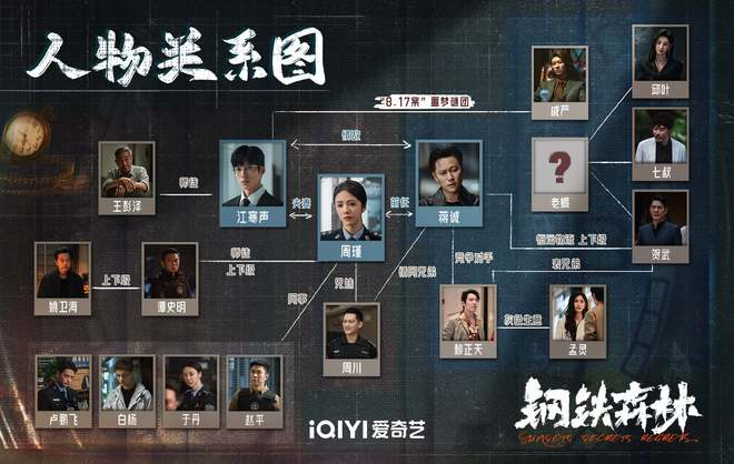 度娘说:《钢铁森林》是由井柏然、蔡文静领衔主演,秦俊杰特别主演,赵荀、杜源、徐洪浩、傅程鹏、孙逊、林艾泇、张铎瀚、杨舒、王春宇、胡毅、张进、于跃、费鲤齐、杨文哲、刘俊子贺联合主演情感向刑侦剧。该剧改编自弃吴钩同名小说,以犯罪心理学教授江寒声、刑事侦查员周瑾、卧底特情警员蒋诚三名年轻的刑侦人才为主人公,讲述警方不畏艰险,追击悬案要案的故事。