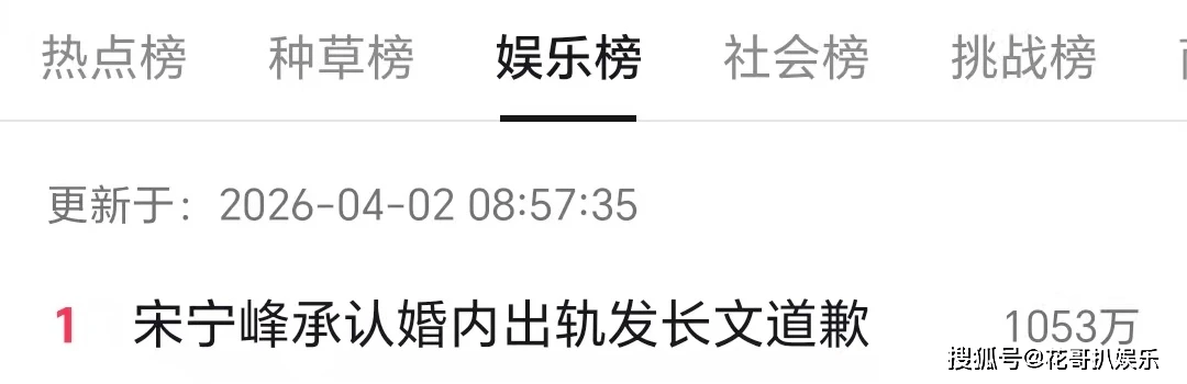 本来以为今年愚人节最大的乐子就是看站姐发图了,没想到大瓜悄然登上热搜。曾靠着《再见爱人2》备受关注的宋宁峰出轨,并且还带着自己的孩子去会情人。