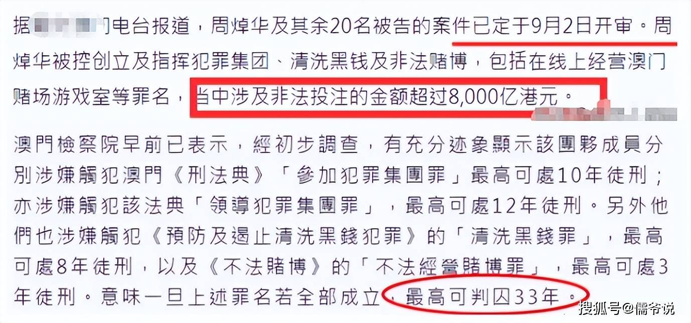 据媒体报道,「洗米事件」将于9月2日开庭。 在公开的信息中,洗米相关金额达到8000亿港币,也就是6800亿元左右,金额之大令人震惊,是普通人一辈子也想不到的数字。据报道,此次事件中检方证人达90人,洗米华涉案罪名多达4起,如果这些罪名全部落实,洗米华很可能面临33年的牢狱之灾。如果真这么判的话,现年快50岁的洗米华将要在牢里老死了。