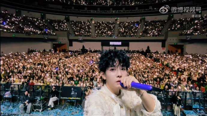 舞台灯光渐暗,观众席却骤然亮起一片流动的星河。胡夏一句“把手机的闪光灯借给我好吗”,武汉场的歌迷便默契地擎起光源,看台如星轨盘旋,内场似银河倾泻。在厦门跨年场,他更带领万人齐喊“马上旺”,光束随节奏轻摇,仿佛时光胶片上跳跃的青春光斑。这种无需指挥的集体浪漫,被北京场粉丝记录为“光的纽带,让回忆不再是过去,而是此刻的共鸣”。