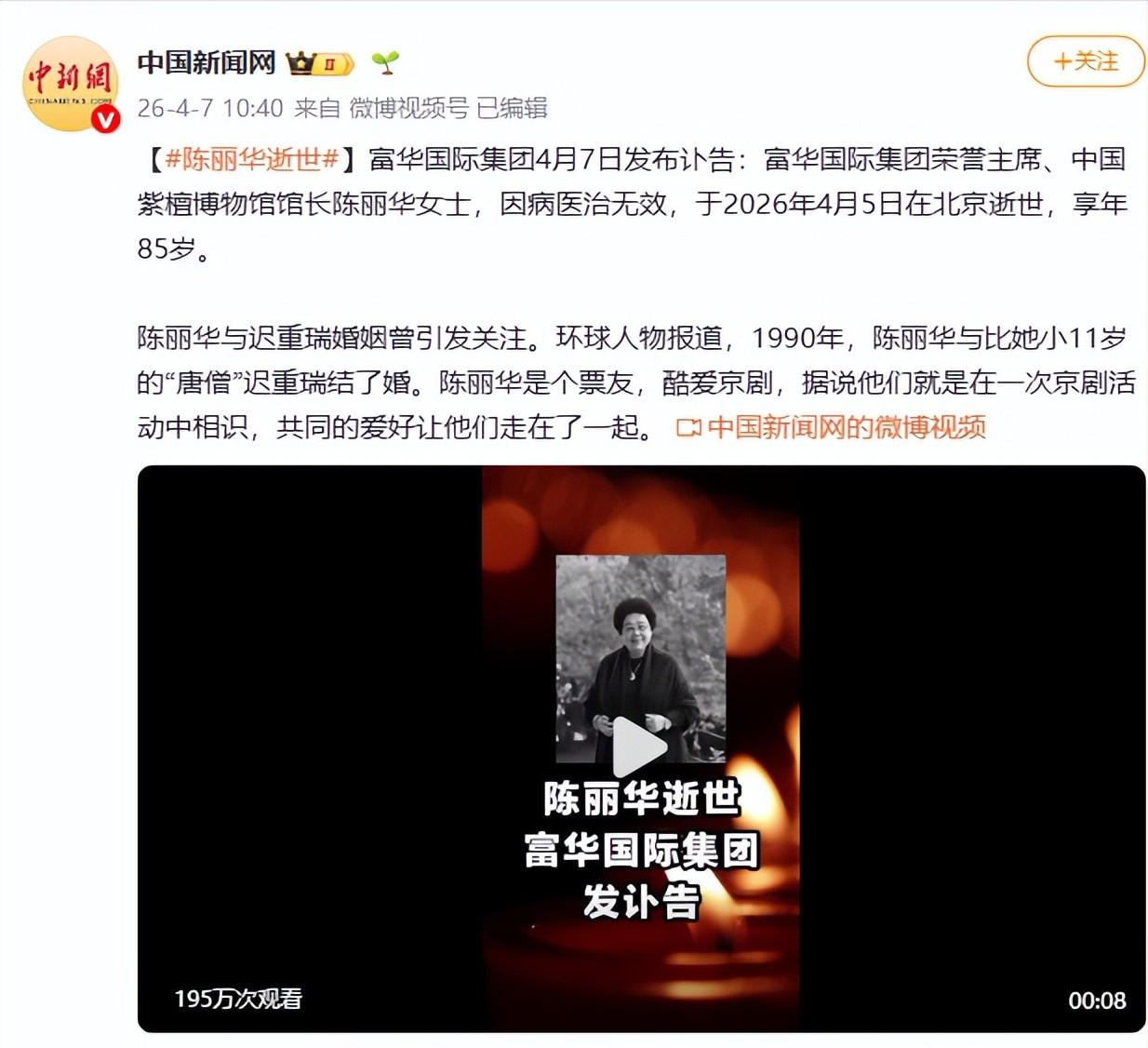 在这个月的5号,正好是清明那天,陈女士因病医治无效,享年85岁,那个一生传奇的女首富,那个和迟先生相伴36年的爱人,永远离开了。