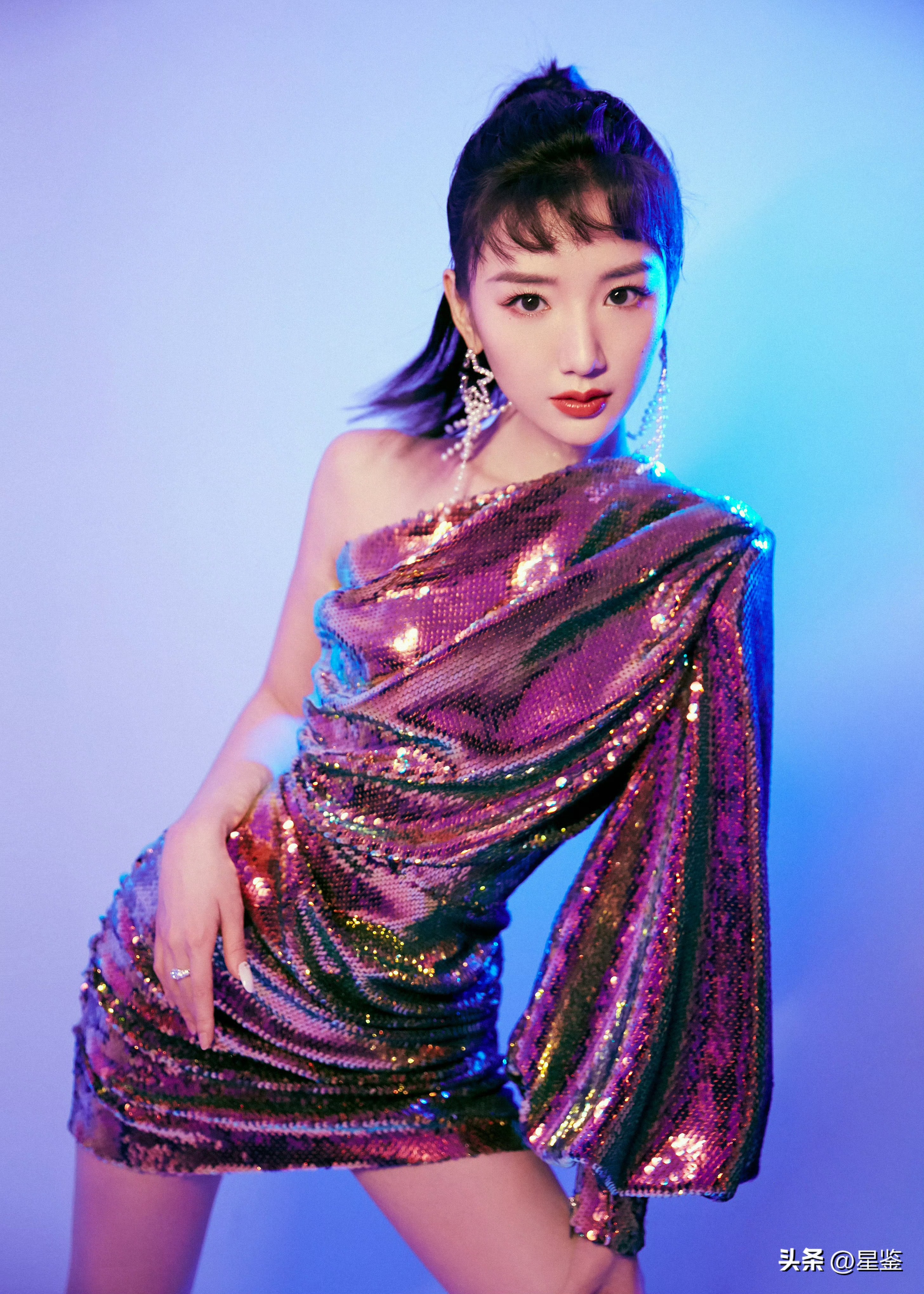 毛晓彤这组舞台造型真的把“精致氛围感”焊在身上了!一身炫彩亮片单肩裙,把细碎的星光都揉进面料里,在灯光下流转着紫绿金的渐变光泽,走路时每一步都像踩着银河,完全是自带打光板的效果。