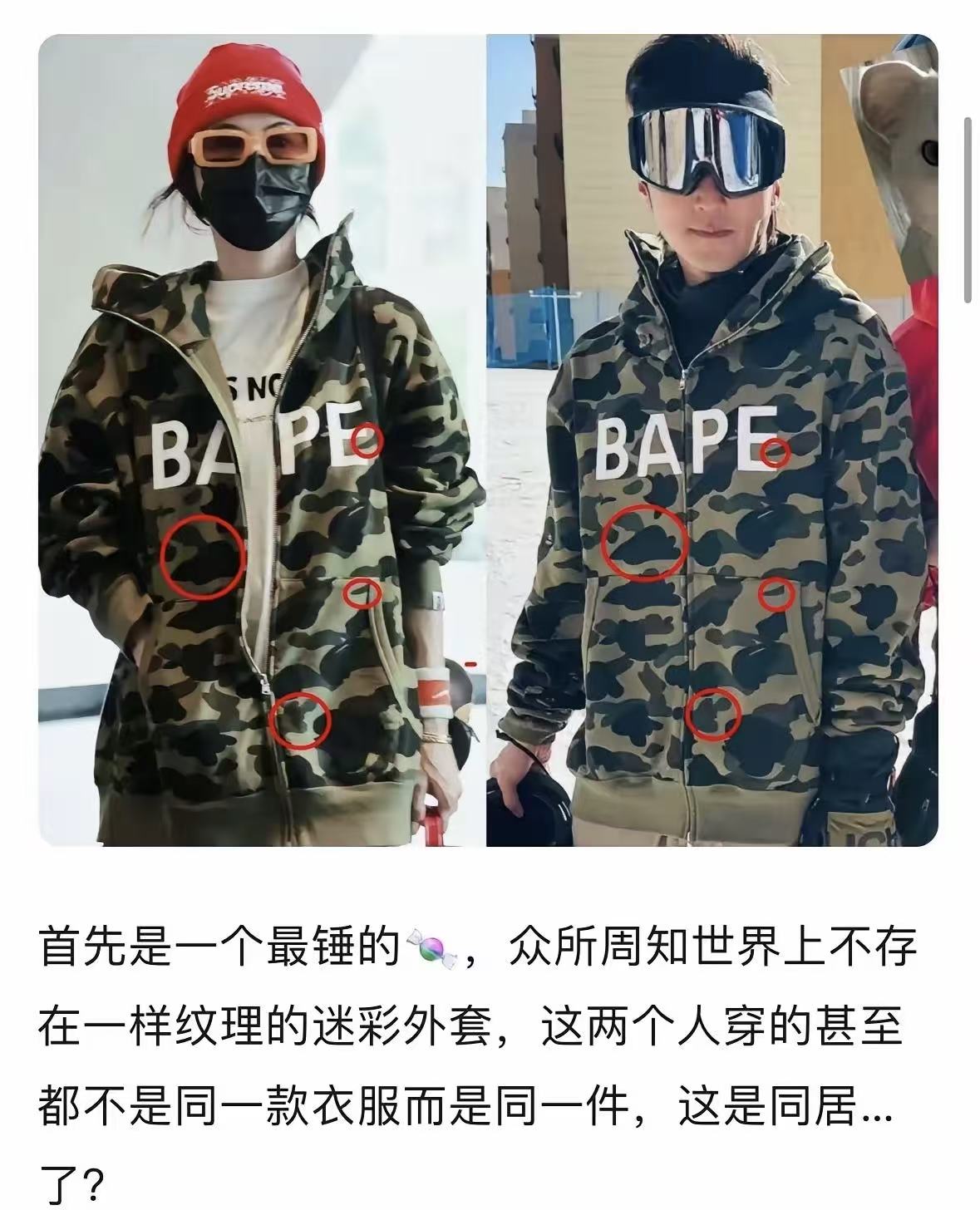 自从张柏芝和谢霆锋在2012离婚后,两人再没被拍到同框过。然而网友扒出张柏芝和谢霆锋从2025年开始,出现了很多同款的衣服。谢霆锋喜欢滑雪,张柏芝也喜欢滑雪,两人有同款的迷彩外套。眼尖的网友发现这不是简单的同款外套,豹纹上的纹理都是一模一样的。