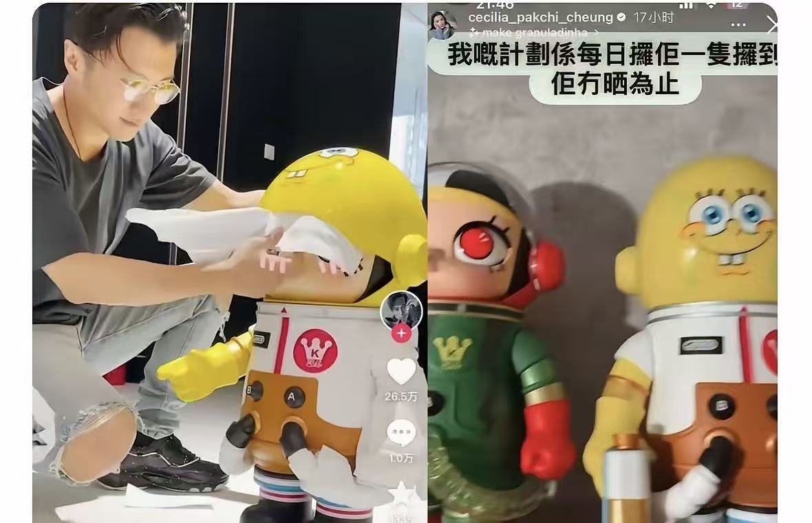 谢霆锋曾经晒过一块潮玩,很快网友就发现张柏芝家中也有。而张柏芝晒这潮玩时说的话也很有意思,她说自己打算每天都拿他一只,直到拿到他没有为止。拿谁的,“每天拿”的字眼看起来就跟这位他很熟。