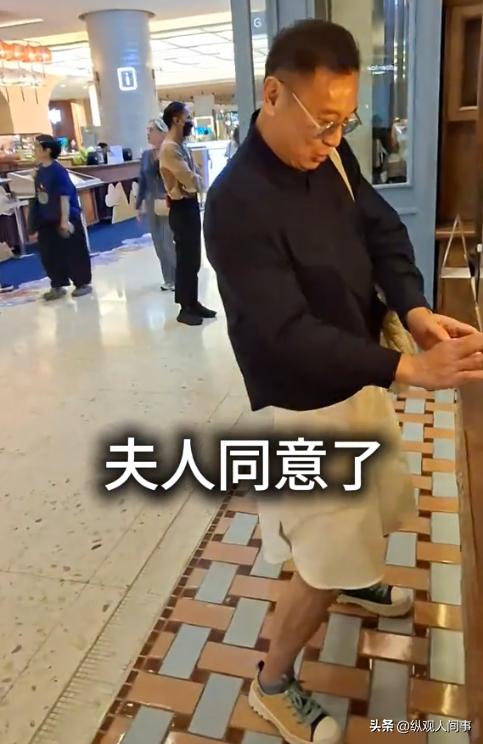 配着太太逛商场的时候,他不像很多人纯粹就是个“拎包工具人,镜头里的他会认真问太太 “你觉得我适合粉红色吗?”,被否定后又乖乖选白色和蓝色。
