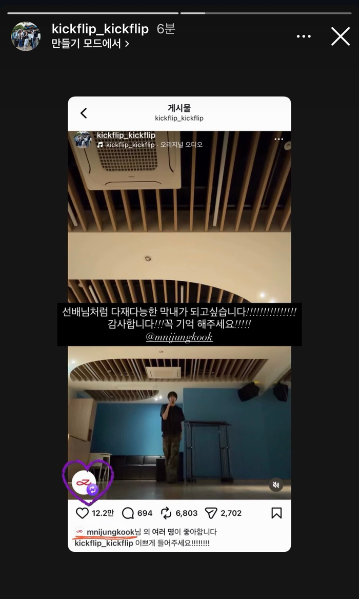 柾国转发了KickFlip成员李东玹演唱的SWIM视频🎶