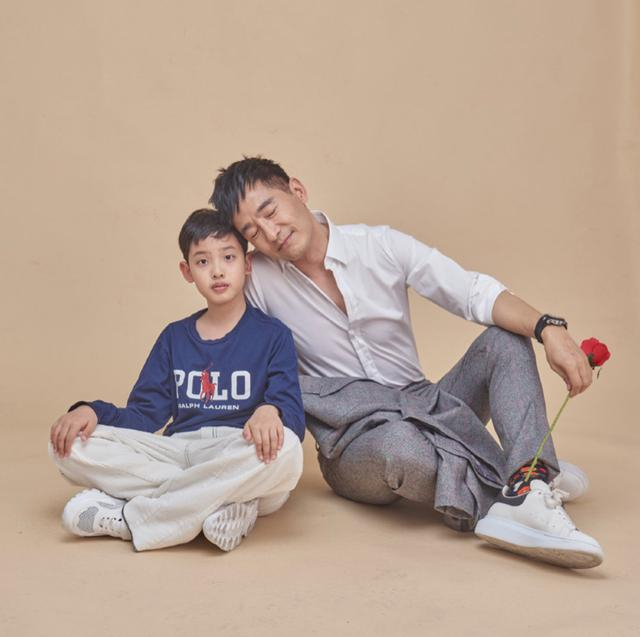 而11岁的孩子目前已经到了爸爸的肩膀,可见未来也是一位大长腿帅哥,这样的合照的确是非常温馨了。