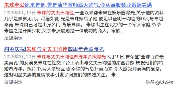 **吃瓜简评:朱珠的“圈外婚姻”大揭秘,原来她早就玩转了“低调到爆”**,大家好,这是我最近刷抖音时无意间看到的一个爆料:朱珠的婚姻生活,说实话,看到标题“朱珠的圈外普通人丈夫真实身份曝光,原来是名校出气的高材生!”我立马就想:这不就是一场“吃瓜”派的天堂吗?果然,这篇文章一开头就把我吸引到了,尤其是“五年前嫁的那个‘圈外普通人’,压根就不普通”这句话,让我瞬间明白:这不只是一个婚姻故事,而是一部充满戏剧性的人生剧。,首先说说背景:朱珠,这位“无人能敌的美人”(怎么是“无人能敌”?不对,应该是“美到炸”),在娱乐圈摸爬滚烫了好几年,从《精英律师》到《玫瑰的故事》,她都能轻松撬票上热搜,仿佛没有什么能让她失去光环,但是这次,热搜不再是因为她的演技,而是因为她五年前的婚姻生活被扒出来了,原来她当年结婚的时候,搭档的是一个“圈外普通人”,而这个“普通人”名校毕业、事业有成、家世不错,简直就是“一枚隐藏在草地里的钻石”。,第一幕:惊天大瓜初现!2021年,朱珠在微博上发布了婚礼照,照片里的新郎穿着西装,看起来很帅,但是网友们翻遍了娱乐圈名人录,竟然没认出他是谁,这就意味着:这位新郎绝对不是娱乐圈的人物,而是从未出过镜头的“圈外素人”,更有趣的是,这位王昀佳先生平时晒晒马、晒晒衣服,粉丝数量甚至不及朱珠,这一看,立刻坐实了“圈外素人”的身份。,网友们一看这婚礼照,立刻炸锅了:“朱珠这是图啥啊?""以她的条件,随便找个富二代不比这强?""这男的看着也就普普通通吧。”说实话,大家会这么想也没错,毕竟朱珠之前那些绯闻对象,哪个拿出来都够写三天三夜的,比如说,2012年戛纳电影节,她挽着菲亚特集团继承人、法拉利前总裁拉波·埃尔坎走红毯,那照片传回国内,所有人都觉得她要嫁进真正的豪门了,但没过几个月,男方街头热吻别的名媛被拍,这段轰轰烈烈的跨国恋就黄了,朱珠倒是潇洒,甩下一句“让给她,男人多得是”,头也不回就走了。,接下来是第二幕:低估了“圈外普通人”的真实身份,婚后五年,朱珠基本不在公开场合提丈夫,王昀佳自己也不蹭老婆热度,两口子就跟隐形了似的,直到去年,有个眼尖的网友发现,朱珠微博晒的一张全家福背景里,挂着一幅国际马术比赛的获奖照片,顺着这条线索往下扒,王昀佳的真实身份才一点点浮出水面,这哥们1986年出生在天津,英国曼彻斯特大学毕业——注意,这可是世界排名前三十的顶尖名校,回国后他没进什么大厂,反而在清华大学教马术,自己本身就是国家二级马术运动员。,更有趣的是,他不光会骑马,还有自己的事业,他创办的男装品牌Sartorial,走的是高端定制路线,客户基本都是商界大佬和社会名流,虽然不像娱乐圈那样天天上热搜,但在圈子里口碑相当硬,更要命的是家世背景,王昀佳的母亲是天津师范大学教授,奶奶住在天津干休所——能住进干休所的,你品品是什么级别,之前朱珠陪他回天津过年,晒出一家人给百岁奶奶祝寿的照片,那排场一看就不是普通人家。,第三幕:她要的从来不是“高攀”,其实朱珠这人,从小到大都没走过寻常路,她的爷爷朱虚之是开国少将,参与组建过地对空导弹部队;她爸朱汉滨创办了“新大陆”冰淇淋,在商界也是响当当的人物,从小在军区大院长大,三岁开始跟孔宏伟学爵士钢琴,奥数航模样样玩得溜,妥妥的“别人家孩子”,高中时托福成绩够上国外名校,她偏不去,跑去北京工商大学读电子信息工程,大学期间教英语、当模特、写稿子,赚钱能力一流,21岁拿下MTV VJ大赛冠军,进了MTV全球音乐电视台主持节目,后来又跨界唱歌演戏,连续多年入选“全球100张最美面孔”,这样的履历,说句不好听的,她自己就是豪门。,所以你看她谈恋爱的风格,从来不是小女生那种“找个人依靠”的心态,跟李泉在一起时被卷入“小三”争议,她一个月就分手,利落得很,跟法拉利前总裁那段,对方出轨她连眼泪都懒得掉,直接拉黑走人,和陈楚河搭档综艺,节目里再暧昧,节目一结束立马划清界限,绝不拖泥带水,见过真正的顶级圈子,也看透了名利场的虚浮,朱珠早就明白一个道理:头衔再响亮、家产再多,都比不上灵魂契合来得重要。,王昀佳吸引她的,估计就是这份“不需要证明什么”的从容,人家有自己的事业,有自己的爱好,不需要靠“朱珠老公”这个标签活着,朱珠拍戏时,他就带女儿去探班,在片场安安静静等她收工;朱珠在家时,他接送孩子、做饭陪玩,把后方打理得妥妥帖帖,两个人都有底气,谁也不依附谁,却又能互相支撑,这才是真正的势均力敌。,第四幕:最舒服的婚姻,是不用演给别人看,结婚五年,朱珠和王昀佳几乎没秀过恩爱,不上综艺,不拍合照,不发小作文,甚至连朱珠微博里提到老公的次数都屈指可数,换成别的明星夫妻,早就把日常拍成Vlog,把纪念日过成大事件了,但你看朱珠的状态,就知道她过得有多滋润,41岁的人了,脸上没有一丝焦虑和疲惫,笑起来松弛又舒展,完全是被爱滋养出来的样子,她照样拍戏,《大秦赋》《叛逆者》《蜜语纪》一部接一部,每个角色都演得有声有色,她能这么自在,说白了就是因为后方稳,不用担心丈夫吃醋闹情绪,不用为了照顾家庭牺牲事业,更不用像有些女明星那样,生完孩子就被迫退居二线,王昀佳自己有事干,不需要老婆天天陪着;朱珠想冲事业,他全力支持,绝不拖后腿,这种婚姻,外人看着平淡无奇,实际