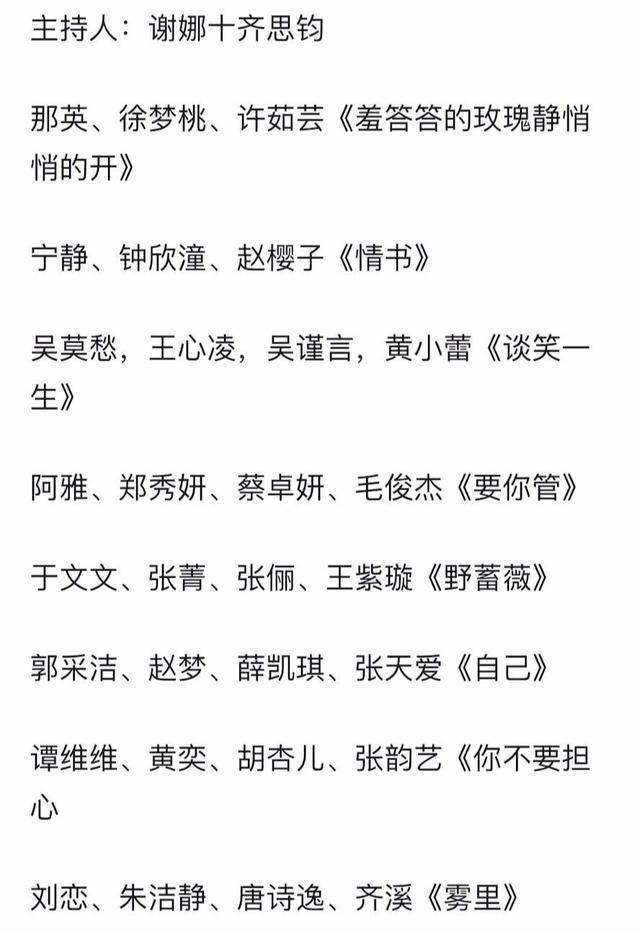 这个名单几乎是囊括了各种类型的姐姐,有演员,有歌手,有唱跳歌手,有年轻姐姐,还有过气姐姐,还有港台姐姐,还有新人姐姐,还有你们都不认识的姐姐,反正这是节目组的决定。因为报名人数特别多,必须要有才艺才可以,比赛唱跳没有技术怎么搞比赛。