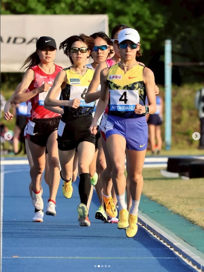 安藤公开了穿着黄色衬衫和紫色裤子的新队服奔跑的样子,“赛道第1站,从日本体育大记录会开始结果:15’48’38(2位)啊,有点晚了,不过跑得很好! ! !”并报告现状。