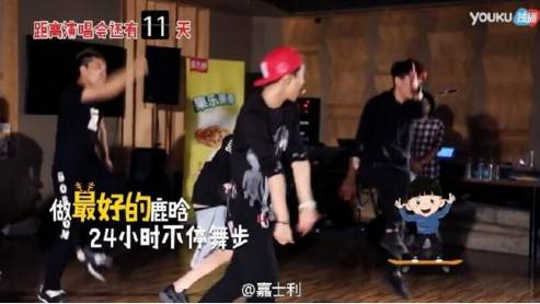虽然时间紧迫,大家有条不紊的紧张排练,却丝毫影响不了他们乐观中二的性格,你看,鹿晗一本正经着弹奏着空气小钢琴,心有灵犀的队友们打着亮光灯响应着。