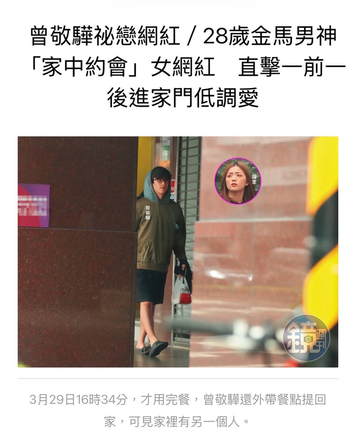 台媒曝曾敬骅恋情,女方是网红罗念。