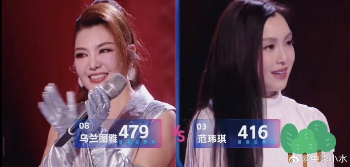 范玮琪的416票由浪花代表团(专业评审)40分(满分50)与大众评审376分构成;乌兰图雅仅获浪花团10分,却以469分大众票逆袭。这一反差凸显评审标准分歧——专业侧重视听完成度与艺术表达,大众更倾向现场气氛与感染力。