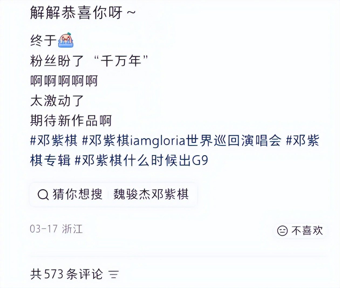 不少粉丝直呼已经累了,放话如果邓紫棋再不出山搞事业,就会脱粉。