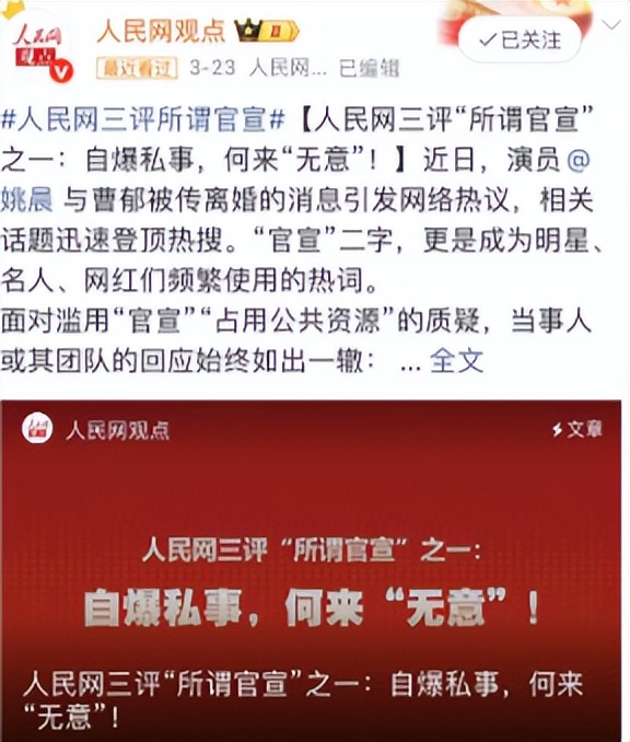 于是人民网直接怒批八个字“自爆私事,何来无意”,明星的私人生活本就不需要大众知情,虽说无意占用公共资源,但造成的影响却并不小。