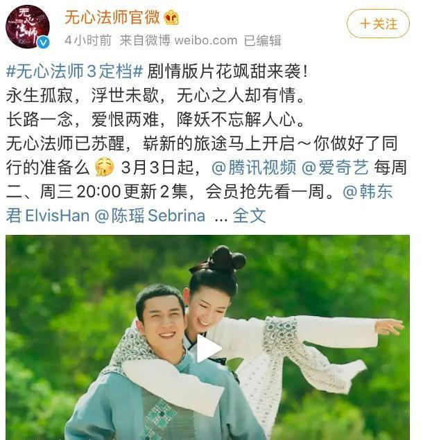 官宣定档之后,韩东君、陈瑶两大主演开始微博营业,两位主角儿的互动也是十分有爱(搞笑)!是我喜欢的那个岳绮罗和无心没错了!