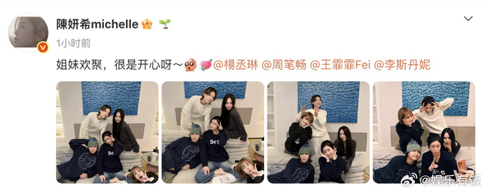#浪姐团看望受伤的陈妍希##陈妍希的石膏上写了躺平# 这是什么浪姐 1+2 的神仙团建!陈妍希跟腱受伤后,杨丞琳、周笔畅、王霏霏、李斯丹上门探望,姐妹局太温暖了