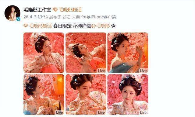 4月2日,毛晓彤的工作室在社交平台上发布了一组她的美照,并配上文字:春日限定·花神降临。照片中的毛晓彤身穿一袭华丽的精致长裙,犹如春日的花神,惊艳了所有人的目光。她的造型将东方美学的柔美与她历经风雨后的坚韧完美融合,仿佛一个温柔而坚强的存在,令人为之驻足,舍不得移开目光。