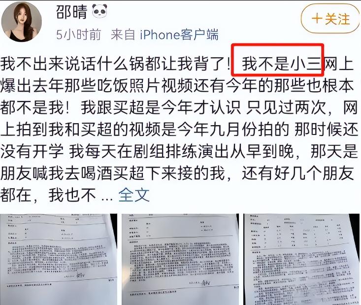 事发后,邵晴曾出面喊冤,声称自己无辜被牵连,甚至表示自己因此患上抑郁症,试图撇清所有关系。