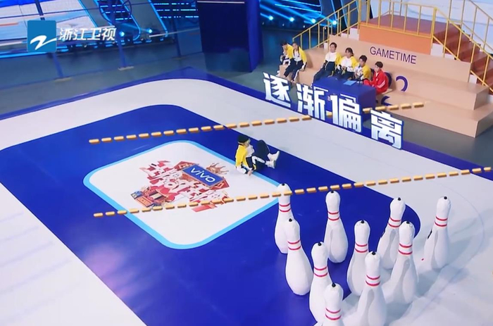 下半场玩儿的是‘人体保龄球’嘉宾轮流参与游戏,蒙眼前滚前行,当决定不再翻滚时,喊出击打口号,并用身体撞击保龄球,撞倒越多胜算越大,王濛文武双全,化身为了现场解说,第一个登场的是拥有腿精之称的北京大妞儿关晓彤
