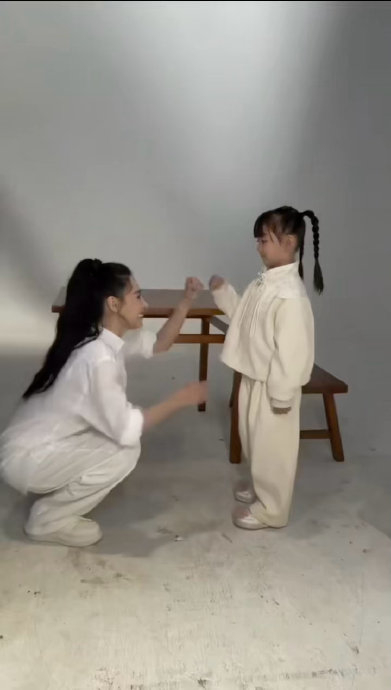 2026年4月,张柏芝身着潮汕英歌舞标志性服饰,头簪传统发饰,手持双槌亮相。视频中,她身姿如松,挥槌利落,一招一式兼具力道与韵律,既精准复刻了英歌舞的雄浑气势,又以女性独特的柔韧赋予舞蹈刚柔并济的美感。45岁的她骨相立体如刻,眉眼锋芒毕露,高扎马尾更添英气,网友惊叹其“顶级骨相扛住岁月”“做男做女都精彩的脸庞与英歌舞气质浑然天成”。更动人的是她与小演员的互动画面,两代人的身影在锣鼓声中交汇,传递出非遗传承的温暖意向。