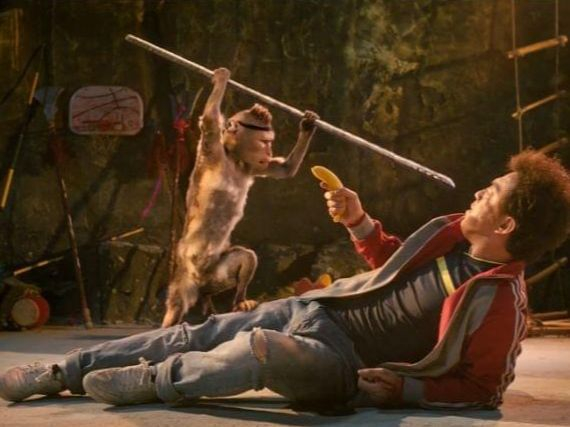 于是镜头总是不断给猴子手办的特写镜头,还有公司门口,一进去就看到的孙悟空盘坐的塑像,一根金箍棒横在手中,造型炫酷,但仔细看,表情凝重而充满悲情。那是一种被束缚的,想要挣脱时的思考状态,是片刻的宁静,随时迎接爆发的一刻。