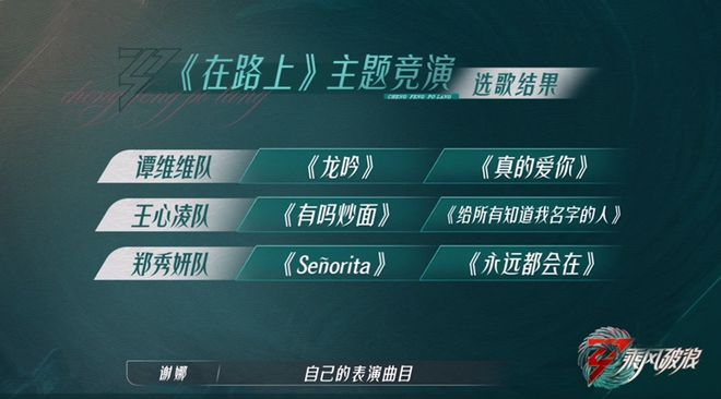 郑秀妍队和王心凌队继续抢歌曲《永远都会在》,王心凌手速更快,奈何队员不给力,最后郑秀妍队抢到了《永远都会在》,而王心凌队只能演唱歌曲《给所有知道我名字的人》。整个选曲过程,王心凌队完美诠释了什么是团队是“零默契度”。