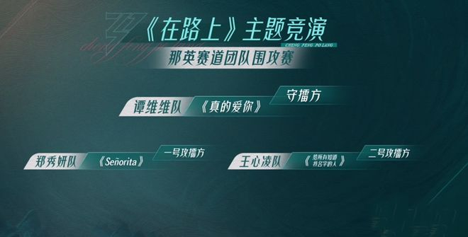 那英赛道为团队围攻赛,此赛道释放两个胜利席位,守擂方一支队伍,攻擂方两支队伍,守擂方获胜,则获得两个胜利席位,攻擂方任一队伍获胜,两支队伍平分两个胜利席位。谭维维队成为守擂方,王心凌队和郑秀妍队成为攻擂方,谭维维队演唱的曲目是《真的爱你》,郑秀妍队则是6人出战,排名布阵上采取田忌赛马的原则,期待她们能够贡献精彩的对决。