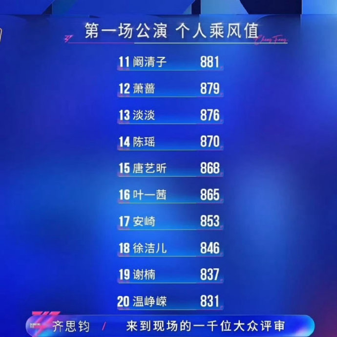 一公正式演出中,该组仅获794票,排名全场倒数第二,安崎个人喜爱度位列第17名。观众现场反馈热烈(如“好甜挺稳”“全程在线”),且舞台完成度获专业认可(全开麦零失误、舞美创意层次饱满),票数却与同场甜歌《心愿便利贴》(850+票)形成显著差距。