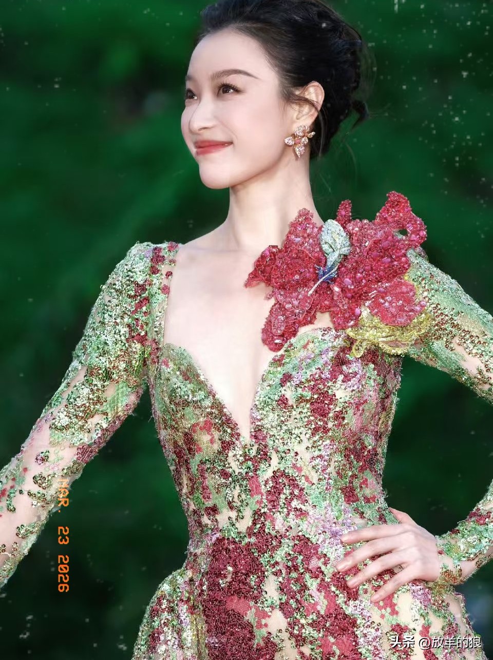 倪妮的一组红毯造型却打破了这个误区,将红绿撞色与亮片结合,穿出了高级质感,普通身材和黄黑皮都能直接借鉴。