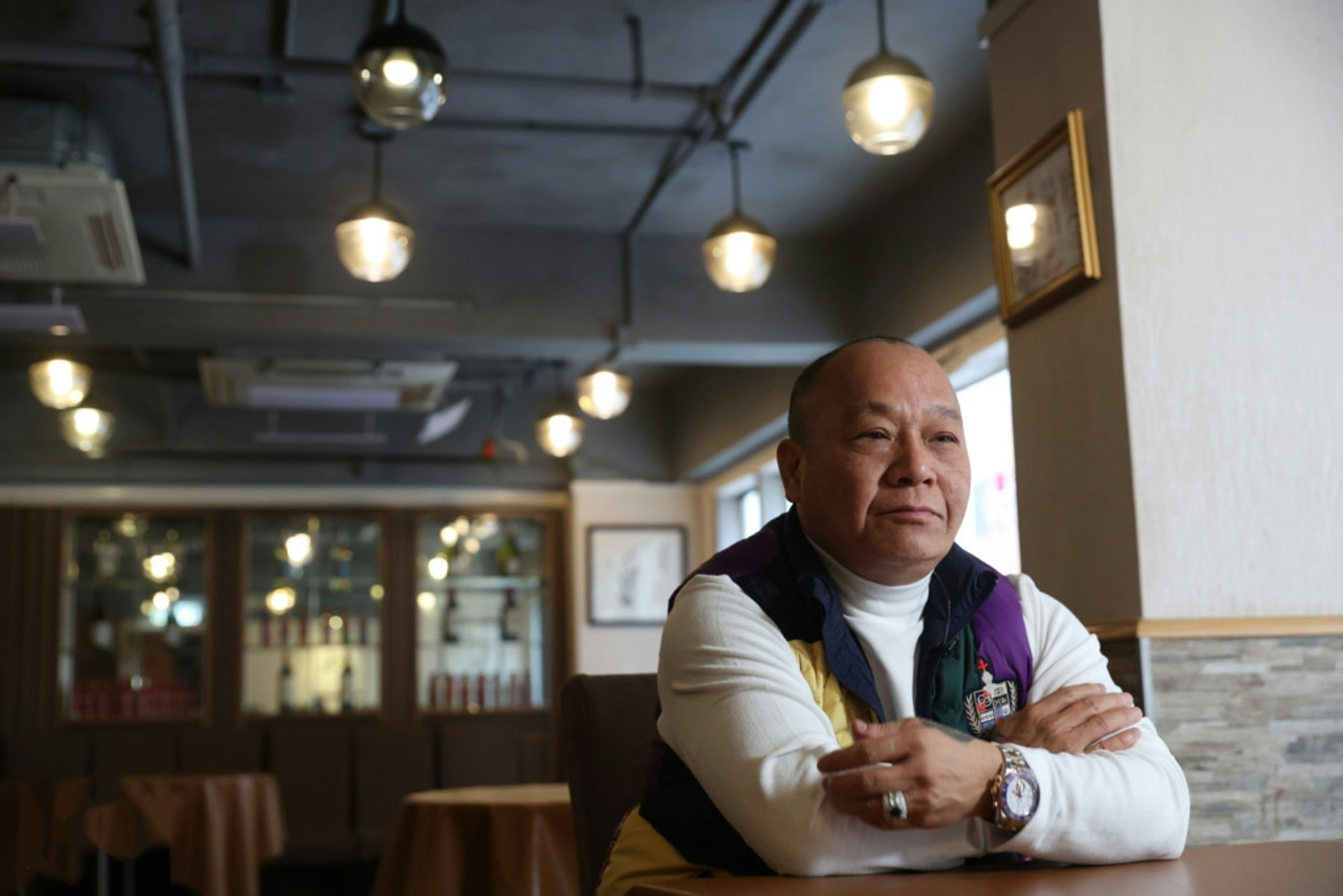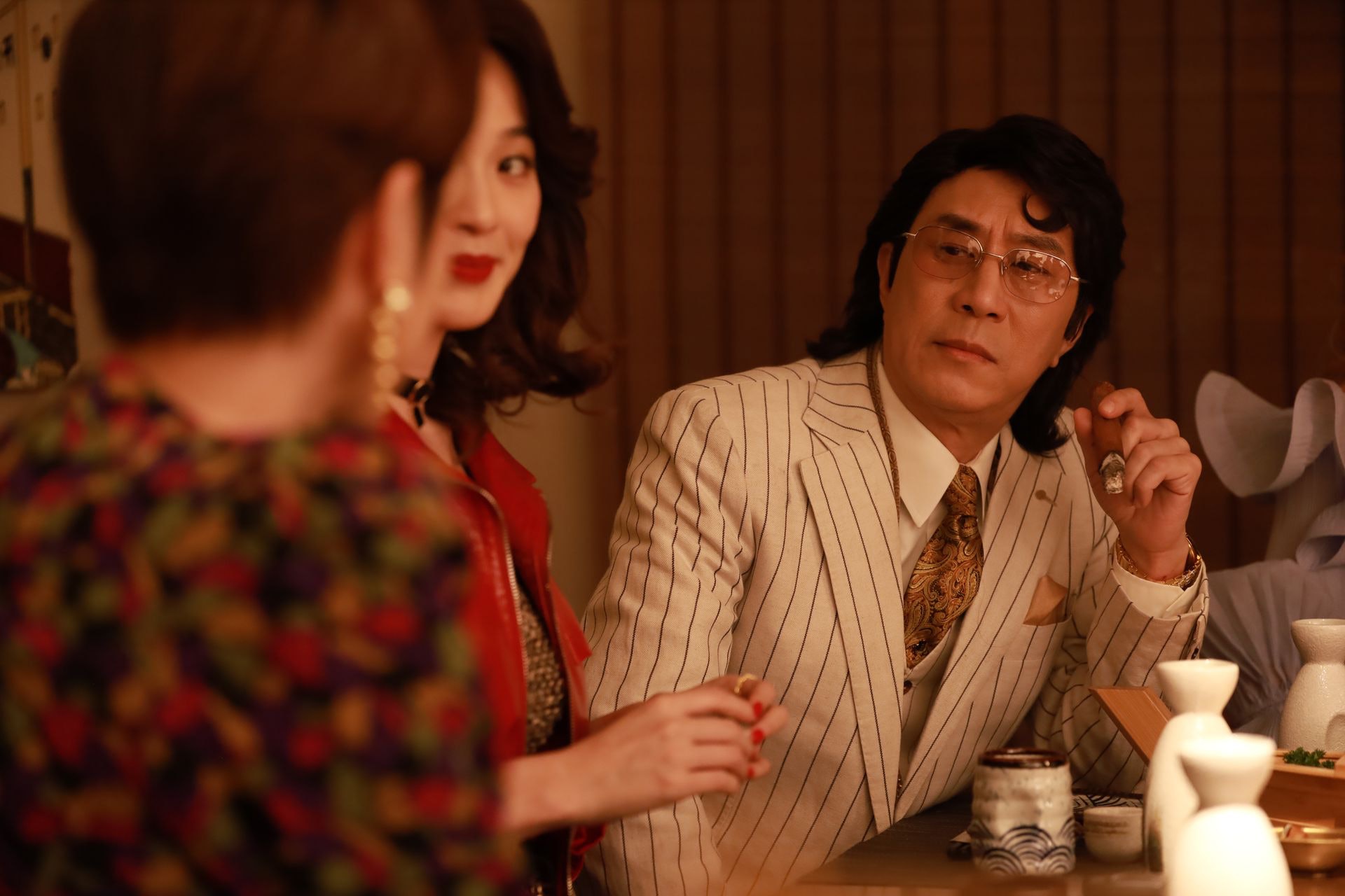 影片中的他常年西装革履、戴细框眼镜,气质冷静、内敛、斯文,但眼神锐利,不怒自威。而他不靠武力,仅凭谋略、城府与权术就在洪兴稳居 “一人之下,万人之上”。