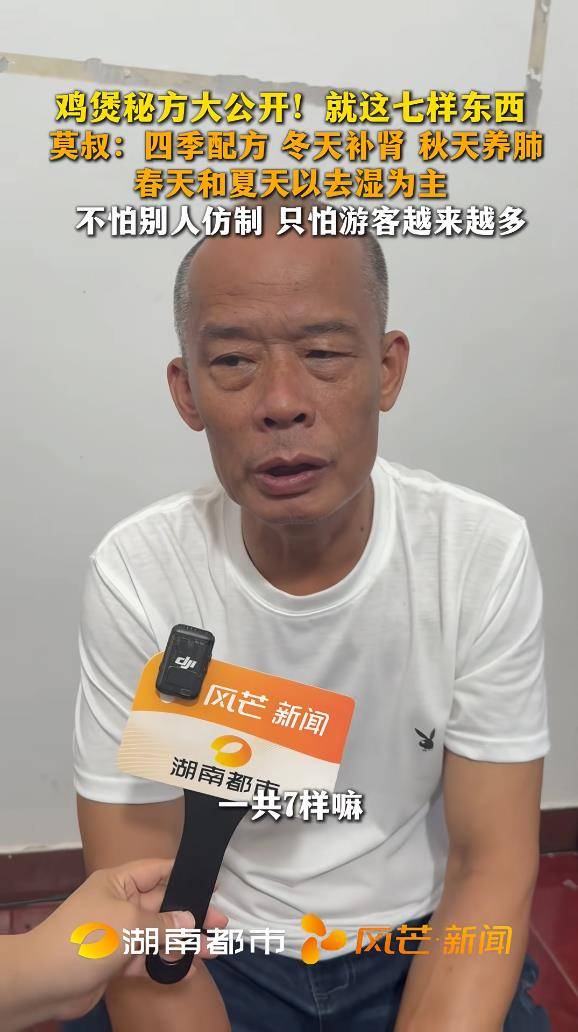 被逼到绝境的莫叔,最终选择“釜底抽薪”。4月10日,他干脆将核心配方公之于众:五指毛桃、土茯苓、茯苓、陈皮、姜、黄豆、红枣,就这7样。连四季怎么调整都明明白白交代了:春夏主打祛湿,多加土茯苓;秋天添百合润肺;冬天则加杜仲补肾,完全适配岭南气候。做法也毫无保留:药材先煲1小时出香,鸡块中火焖10分钟,仅加盐调味,蘸料配沙姜红葱头。他直言:“不怕别人仿制,就怕游客越来越多。”