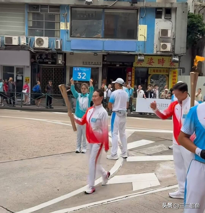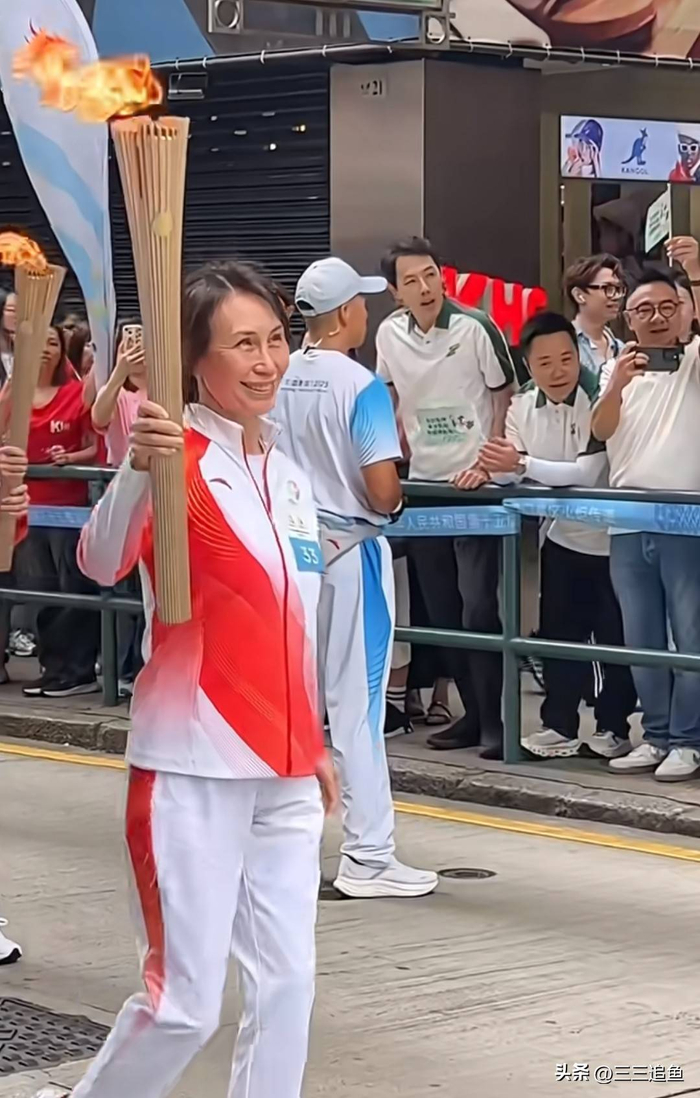 接着,她与上一位火炬手击掌合影,全程身姿挺拔,精气神十足。尽管年过六十,气质依旧出众,素颜也掩盖不住她大方干净的气场。