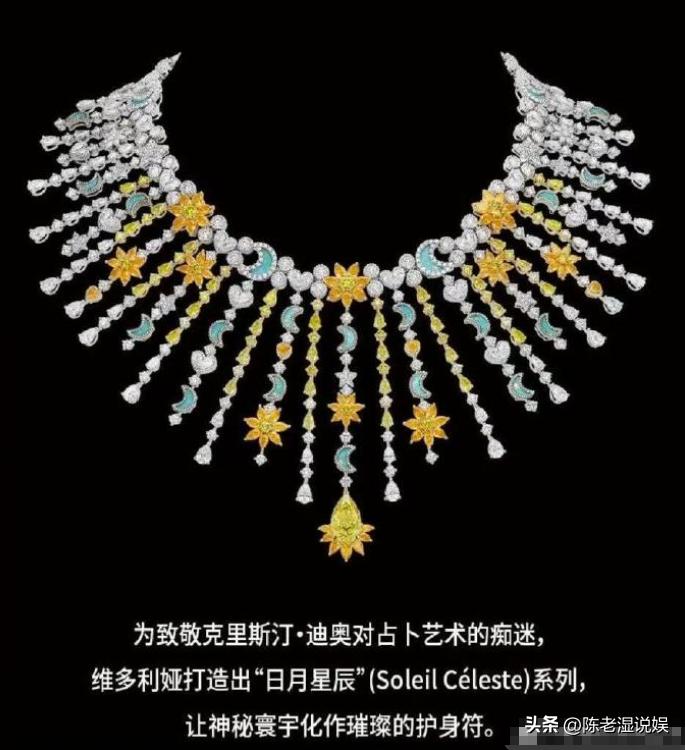 搭配迪奥日月星辰系列项链,锁骨间的珠宝简约却不失精致,整体造型走冷艳大气的女王风,