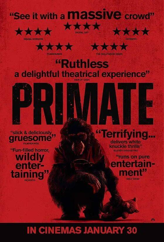 2026年1月9日热映的R级恐怖片《猩疯血雨》,投资2100万美金,全球票房7000万,尽管是以小博大的卖座片,可惜口碑崩塌了!