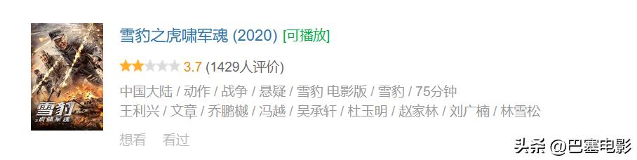 比如《雪豹之虎啸军魂》《胖子行动队》《测谎人》等,豆瓣评分全都不过5分,糊到根本没人发现他演了这些戏。