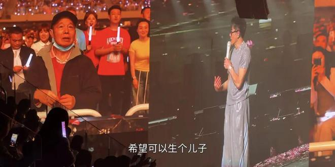 郭富城有三个女儿,这次合肥演唱会上,一位坐在前排的安徽大爷,突然冲到台前,操着浓重安徽口音喊:“城城,再生个大胖小子,培养第二代天王!”还掏出红包要塞给他,里面据说写着“生子秘籍”。