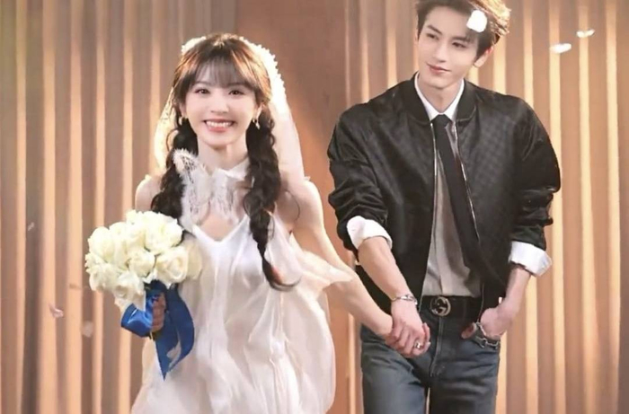 在逆光柔焦与漫天花瓣的交织下,两人携手步入现场,十指紧扣、对视浅笑,宛如真实婚礼现场。拍摄环节中,张凌赫低头轻吻田曦薇手背,眼神专注温柔;田曦薇从背后环抱为其量腰围,俏皮喊出“肩宽一尺八”的即兴台词,张凌赫耳尖泛红、憋笑配合,尽显少年羞涩。当田曦薇不慎踉跄,张凌赫本能搀扶、整理头纱等细节,被观众盛赞“无工业糖精的真实甜感”。