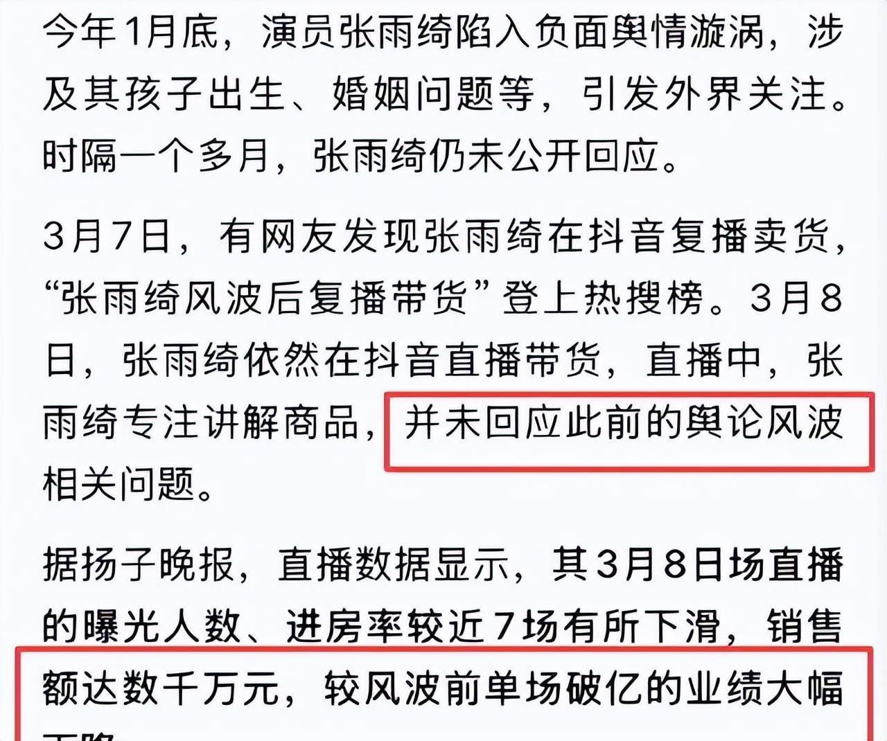 有工作人员晒出聊天记录,称张雨绮暂停所有公开亮相、一头扎进直播带货的原因。