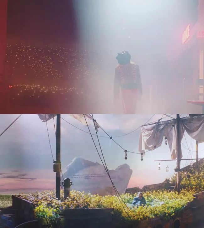 中间闪过演唱会皇冠灯海的画面,船只废墟中满满的黄色鲜花也象徵著V.I.P们的不离不弃。