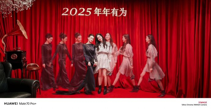 2025年微博之夜:两人使用华为Mate 70系列AI功能拍摄“双向奔赴”动态轨迹照,重现《我才不要和你做朋友呢》中的“母女”默契。