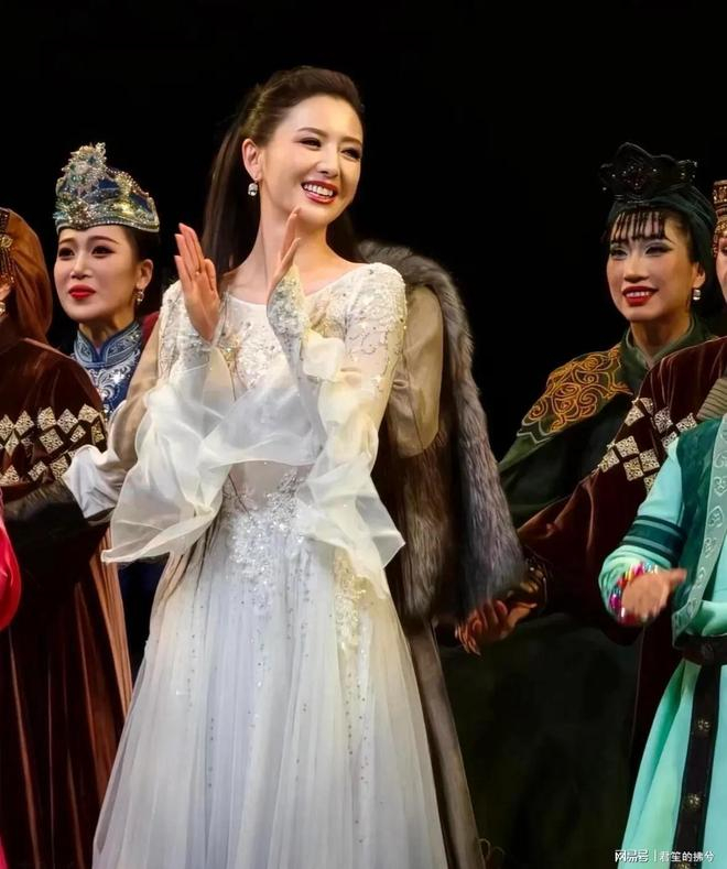 首演现场,42岁的佟丽娅挑战高难度舞段,标志性雄鹰起舞刚柔并济,裙摆翻飞间尽显力量与柔美,谢幕时,她换上皮毛披肩,与身着民族服饰的演员们一同鞠躬,儿子朵朵与董璇女儿小酒窝也登台助阵,三代同台的画面温馨动人。