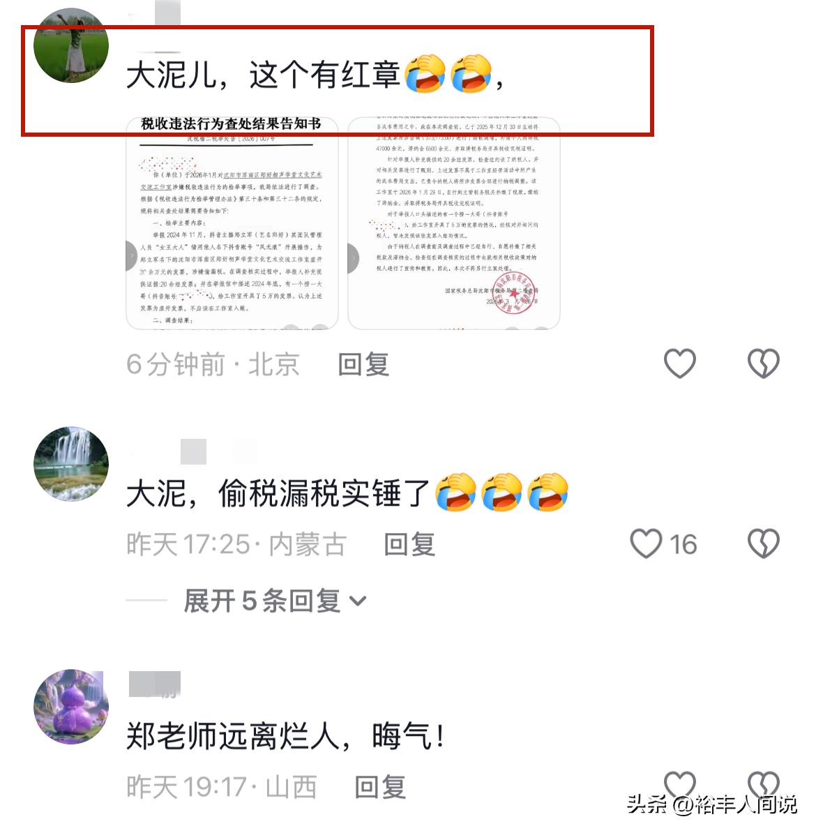 最近郑好又搞大新闻了!这次的风波可不像之前的“海河风波”那么轰轰烈烈,但也足以让整个网络都炸开锅,事情是这样:郑好(本名郑立军)这两天在视频账号上分享感慨,提醒大家“永远不要听信谣言,人生难免遇到烂人烂事及时止损继续前进”,这番话看起来像是在回应某些闹剧,但没想到这次分享的内容,却又让他引来了风波。,郑好这次的“吃瓜”对象竟然是他的自己,前德云社艺人戴九安在小号上公开了税收违法查处结果告知书,上面直接点名了郑好在沈阳成立的工作室,这份告知书一出,网络上顿时炸开了锅,工作室涉税问题应该是正常的事儿,但郑好这次的“偷税”却被放大到了一个不寻常的高度。,据告知书显示,郑好涉嫌虚开发票,涉及金额高达30万,涉嫌偷漏税,这部分数据还被质疑,认为这笔钱应该入账给工作室,更有趣的是,调查结果显示,郑好确实存在虚开发票的问题,需要补缴个人所得税4.7万,还有滞纳金650多,但最让人哭笑不得的是,郑好在调查前已经自行补缴了相关税款,这一举动还得到了税务部门的认可,结局也就温和一些。,但问题来了:如果郑好不是被举报,而是自己主动补缴,这才是真的“吃瓜”吗?这也让不少网友开始“怒怼”郑好,有人说:“郑好这人啊,真是配得上‘偷税贼’二字!”还有人调侃:“不愧是德云社的顶流,连偷税都能做到风风火火。”也有部分网友认为,这次风波其实并不大,毕竟税务部门最后没有对郑好做出严厉处罚,这也反映了现实中偷税的现象其实很常见。,更有趣的是,这次事件也让“吃瓜达人”郑好再次成为网络的焦点,从之前的“调侃郭德纲、张云雷、岳云鹏”到现在的“偷税风波”,郑好真的把“吃瓜”发挥得淋漓尽致,这也反映了郑好这人在德云社的“大名”所带来的“包袱”,作为顶流,他的每一步都都处于舆论的风口浪尖,稍微一动,网络上就会炸开锅。,郑好这次的“吃瓜”也提醒我们一个道理:在网络时代,每个人都要对自己的行为负责,吃瓜固然有趣,但也要注意别给自己招惹麻烦,而郑好这次的经历,证明了一个真理:吃瓜到一定程度,真的会变成自己吃亏。