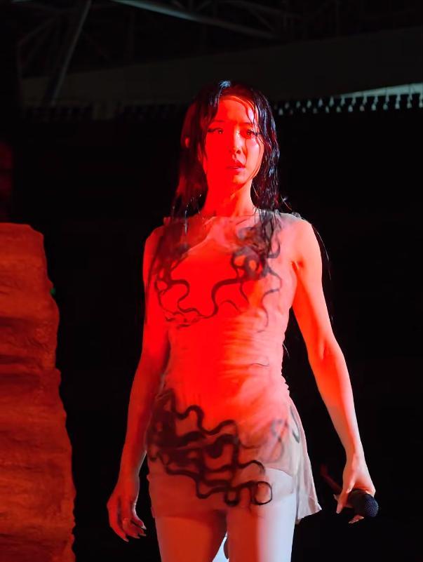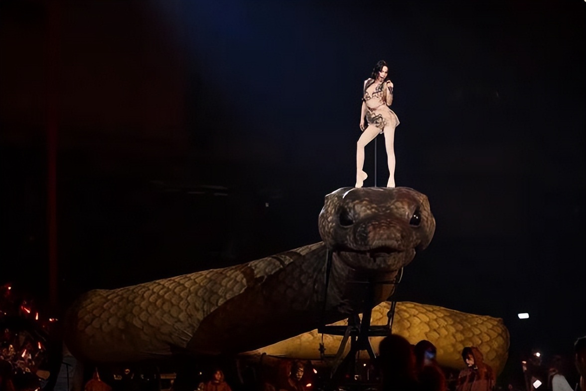 其中那条引发后来全部争议的三十米机械巨蛇,是整个开场章节的核心装置,蔡依林踩在蛇背上绕场演唱《美杜莎》,全开麦,无失误。