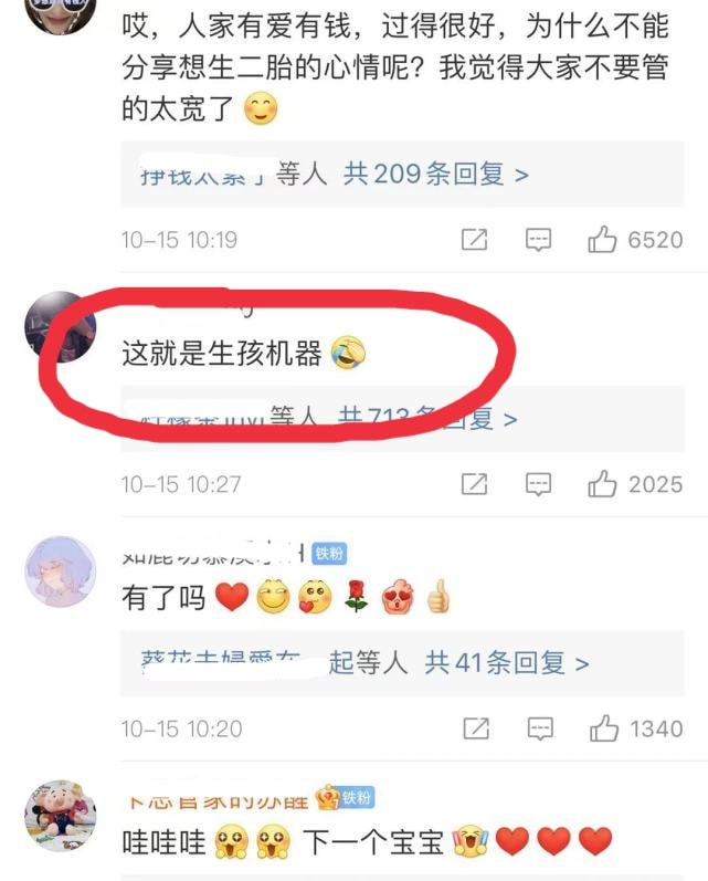 刚刚向太转发儿子的官宣动态并发文,先是夸赞儿媳郭碧婷辛苦啦,但是还是很美的,称当初说生三个娃是郭碧婷说的,自己不会催她生娃,但是会鼓励和奖励,向太这句话应该是在回应网友的“生孩机器”言论了,暗指郭碧婷追生二胎是她自己的意愿,自己作为婆婆不会催她生三胎,郭碧婷确实说过想生三个孩子,想必二胎宝宝出生后,郭碧婷自己会把三胎计划提上日程吧。